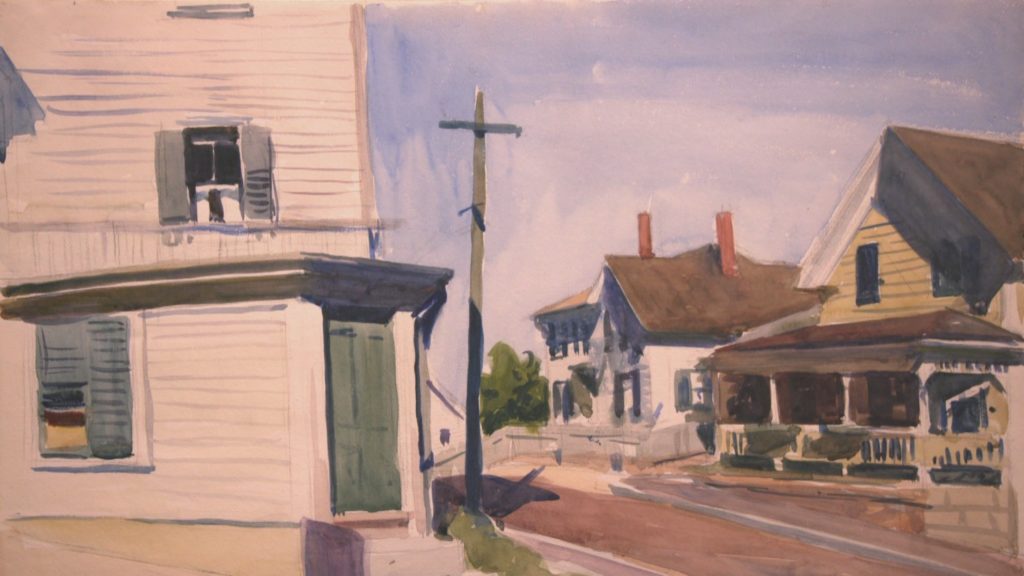 Edward was especially drawn to fishing scenes, to the immigrant community in the city's Italian neighborhood, and to the signals of modern times, like utility poles. He also dwelled on dwellings, and many of Hopper's homes still stand, like Anderson's House and Hodgkin's House.