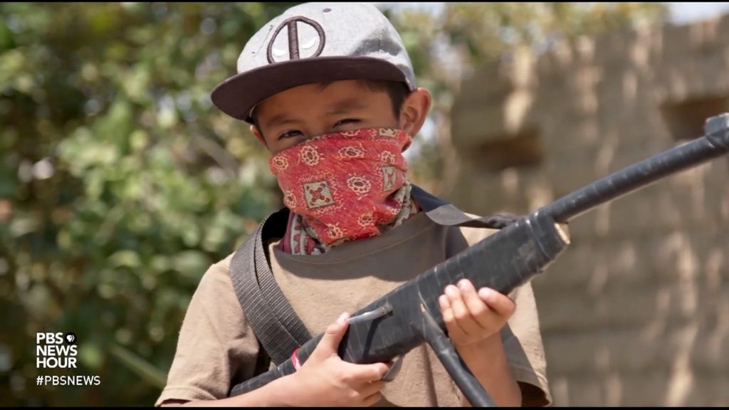 Mexican law allows some indigenous communities to establish their own police forces. So, children over 12 can have real guns, but all of the very small ones have toy guns. And the reason is, it gets them used to the idea that they have to defend themselves.